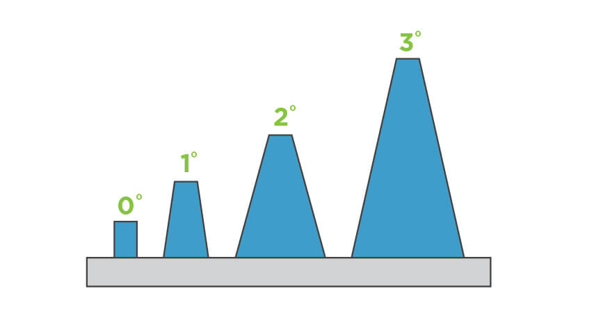 拔模有助于零件从模具中脱模。此处显示了不同程度的吃水深度。